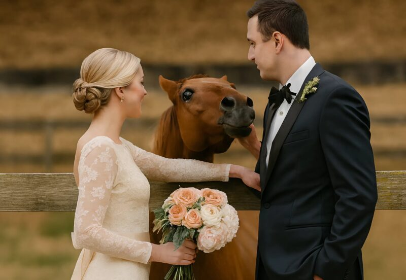 My fiancé didn’t mind the idea — on the contrary, he said photos with the horse would be unique and romantic. Everything was going perfectly: a soft breeze, the morning light, the photographer giving directions. But as soon as we approached the fence and stood next to the horse, she suddenly began to neigh loudly, stomp her hooves, toss her head, and even push my fiancé in the chest with her muzzle.