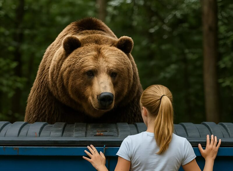 It was early morning. I stepped out of the cabin and immediately noticed a huge bear near the trash containers. My heart dropped. I froze, my hand ready – if necessary, I would have to use a tranquilizer dart. But the bear showed no aggression. She just stood still, staring straight at me.