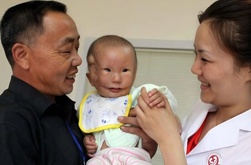 When they brought her the baby, she was paralyzed with fear. Hu Kang was born with a rare and severe condition – a bilateral transverse facial cleft.