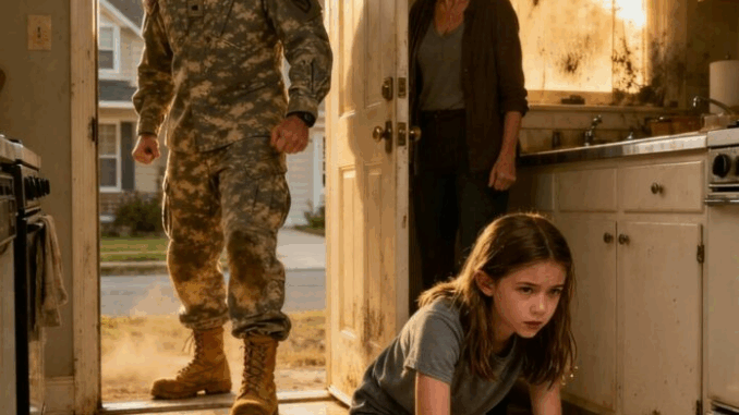 Emily’s heart pounded in her chest. She had hoped her father would come home soon, but she never imagined it would be today. The sound of the front door opening made her freeze. She looked up and saw him: James Harper, her father, uniform slightly wrinkled from months in the field, boots dusty from travel, eyes wide with disbelief and anger.