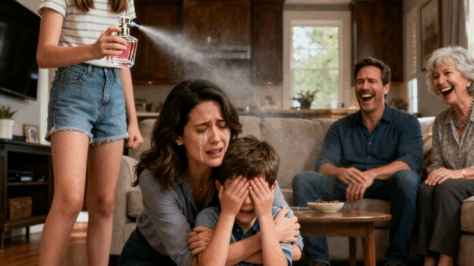 After my sister sprayed perfume into my son’s eyes, Mom laughed and said, “If he’s blind now, maybe he won’t realize he’s a burden.” Dad added, “At least he smells good now.”…