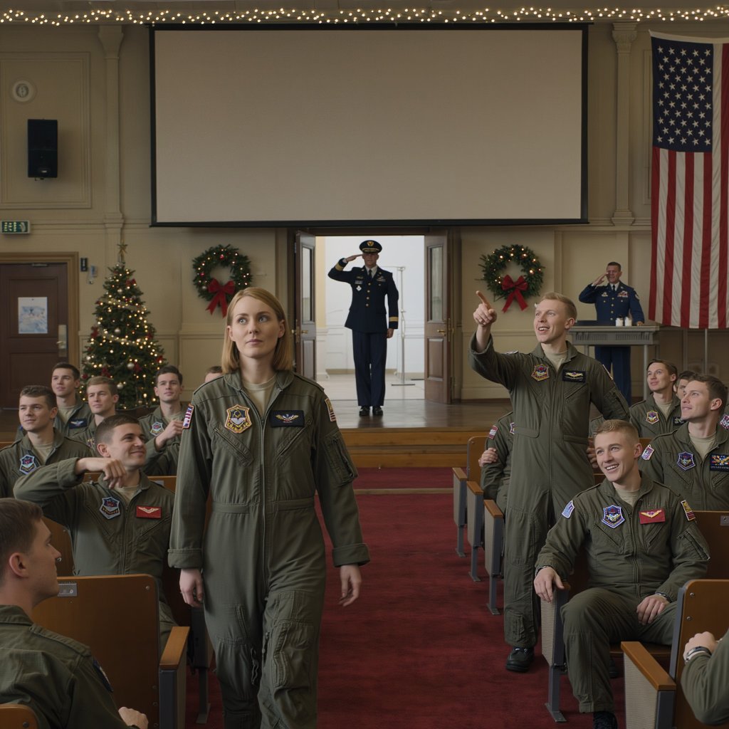 I stood near the front, off to the side, near the water cooler. I was wearing a sterile, unadorned flight suit. No name tag, no rank insignia on my shoulders, no unit patches—just plain olive‑drab green. To the untrained eye—or the arrogant eye—I looked like support staff. Maybe intelligence, maybe administration, maybe just someone lost.