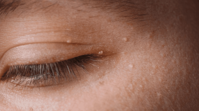 Milia are tiny white cysts that typically appear on the cheeks, eyelids, or around the eyes. They’re caused by keratin (a protein in the skin) becoming trapped beneath the skin’s surface. Milia are common in newborns but also occur in adults due to sun damage, use of heavy creams, or trauma to the skin.