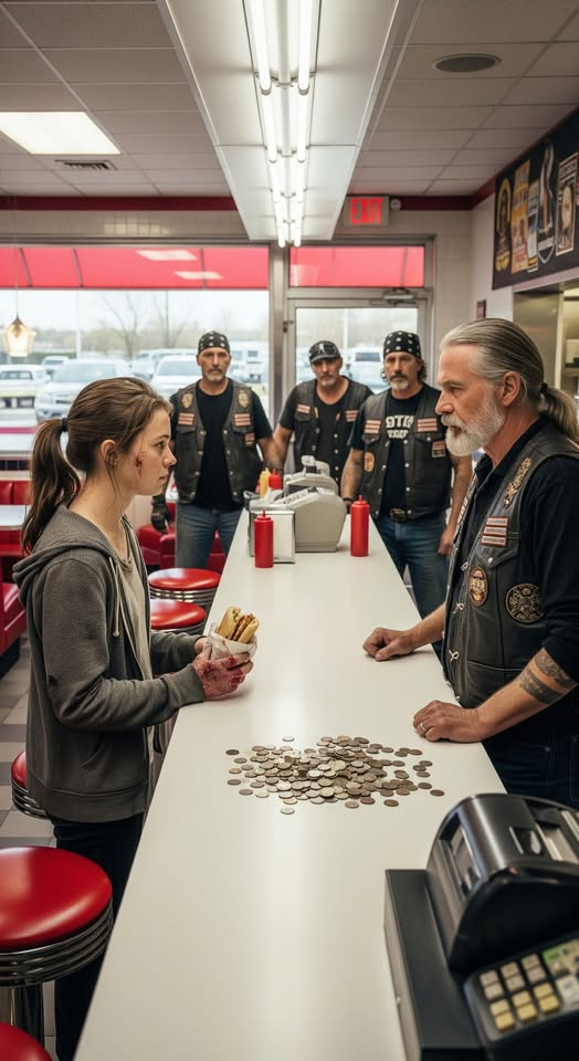 The child standing there couldn’t have been more than eight. Barefoot. Shivering. A thin nightgown clung to her small frame, torn at the hem and soaked through by rain. Her hands were red—completely red—trembling as she pushed a wad of crumpled dollar bills forward.