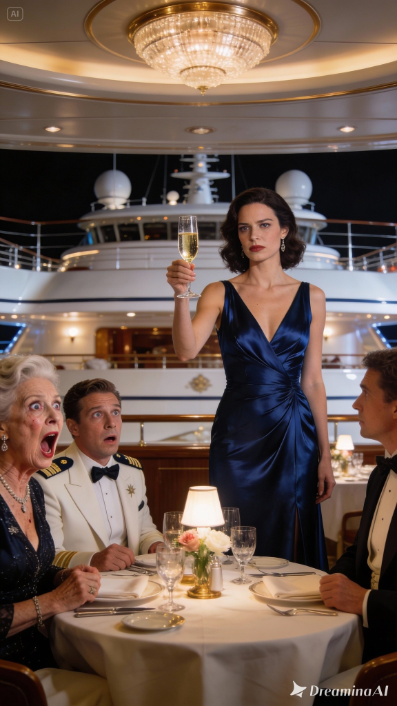 It is the most formal night of the cruise, held in the Grand Dining Room with live orchestral music and a photo op with the ship’s captain. I dressed for battle. I wore a gown I hadn’t touched in years—a deep blue satin that draped like water and made me feel like a queen. I put on my diamond studs. I wore red lipstick.