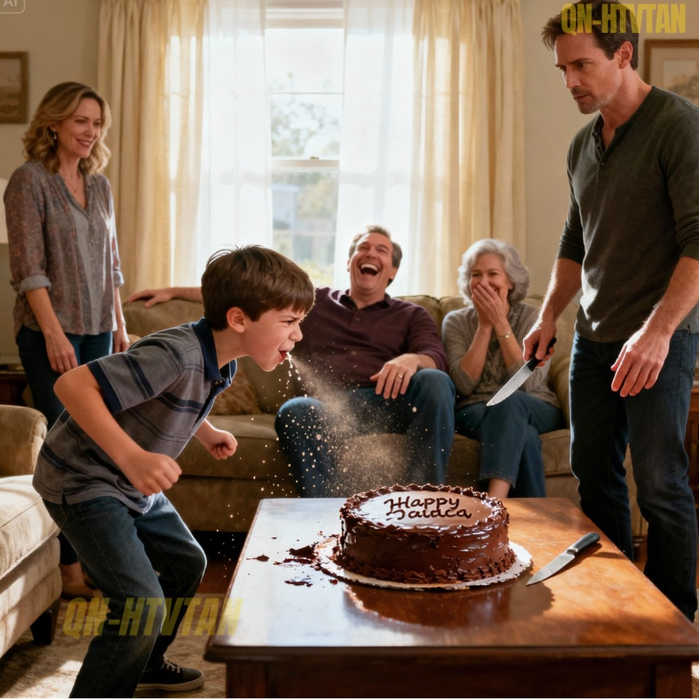 The silence was heavy. The kind that hums in your ears. I peeled away the plastic cover from the cake box, inhaling the familiar scent of cocoa and sugar that used to mean comfort. I was halfway through the motion of slicing when Mason stood up. He looked right at me, his expression flat, unreadable. Then, without hesitation, he leaned over and spat—hard—onto the center of the cake.