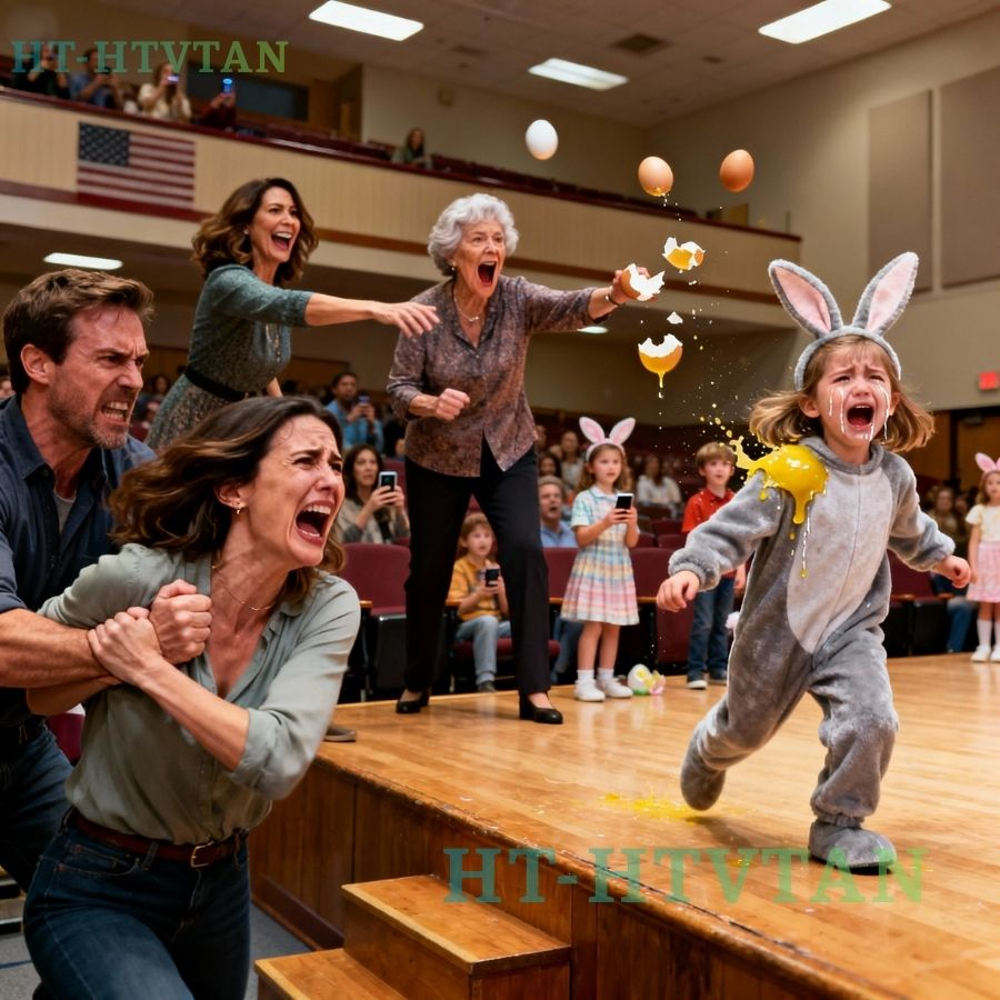 She turned and ran, fleeing the stage through the wings, her rabbit tail bouncing wildly with each frantic step. Her cries echoed through the auditorium long after she disappeared from view, raw and broken. The room erupted into hushed chaos. Parents whispered angrily, some standing, others pulling their children close. Several phones were raised now, but not to record the play.