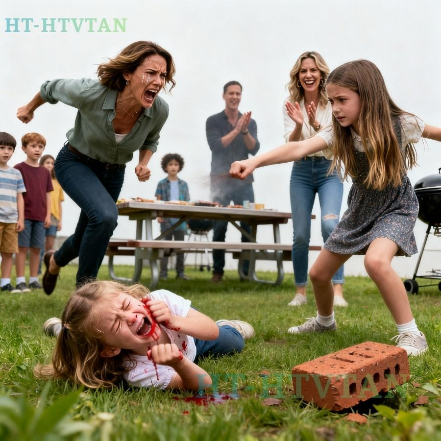 Everything happened too fast and too slow at the same time. The brick left her hand. The air seemed to split. The sound it made when it hit Sophie’s face was sickening, wet, final. Sophie’s scream tore through the yard as blood burst from her nose and mouth, her small body crumpling backward into the grass. The bouquet scattered, petals darkening as they soaked up red.
