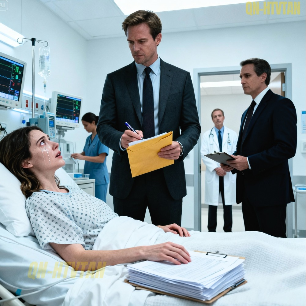 Please, please bring my husband in. The door opened. Ryan walked in, but he didn’t rush to my side. He didn’t hold my hand. He didn’t cry. He didn’t even bring a single flower. With him was a man I didn’t recognize, dressed in a black suit, holding a large yellow envelope. Ryan, I choked out. I’m scared. The doctor said I might be paralyzed.