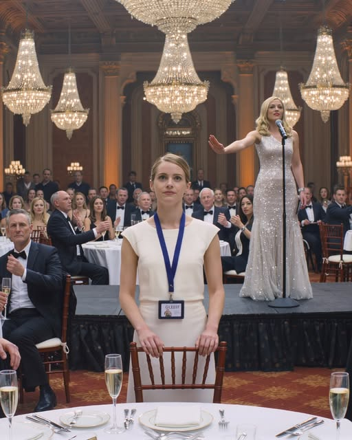 I was half-turned in my chair, my fingers resting on the slender stem of a champagne flute I hadn’t yet raised. The guest badge around my neck felt suddenly heavier, like someone had slipped a chain through the plastic.